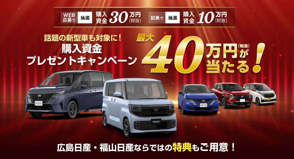 広島日産の取扱車ラインナップをご案内。車の詳細・オンライン見積り・試乗車検索など